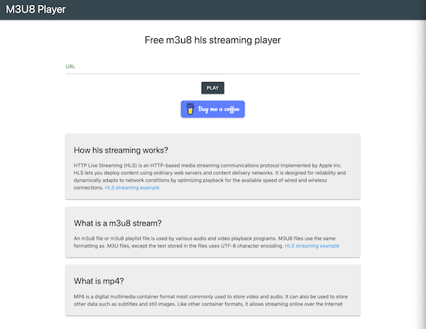 m3u8player.net, 非常棒的M3U8播放网站,界面清新,还没广告,觉得好,可以给作者买一杯咖啡。非常推荐。