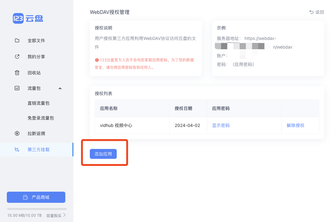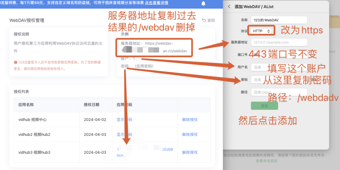 Vidhub 如何挂载 123云盘?