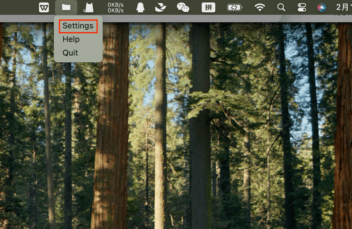 - 启动 WebDAVNav Server,点击顶部菜单栏中的 Settings。